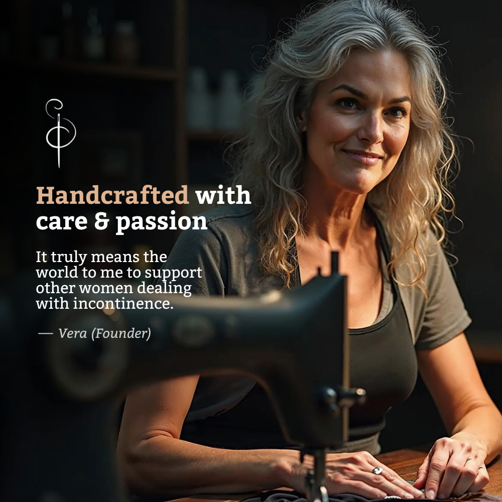I love staying active, but incontinence was holding me back. Vera's handmade underwear gave me the protection I needed, even during my Pilates classes. It’s comfortable and absorbs everything without feeling bulky. I love staying active, but incontinence was holding me back. Vera's handmade underwear gave me the protection I needed, even... I love staying active, but incontinence was holding me back. Vera's handmade underwear gave me the protection I needed, even during my Pilates classes. It’s comfortable and absorbs everything without feeling bulky.
